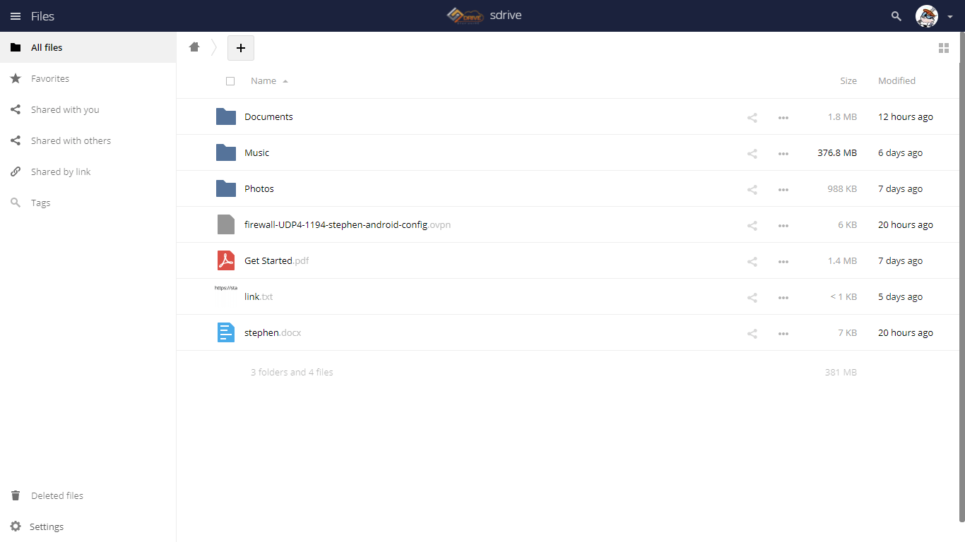 Our most modern cloud storage is called SDrive. This is the storage backup similar to Dropbox, Onedrive, Google Drive etc., using OwnCloud, common open source file sync and share software. It provides a safe, secure, and compliant file synchronization and sharing solution.