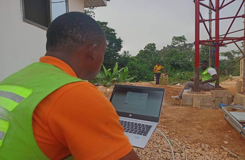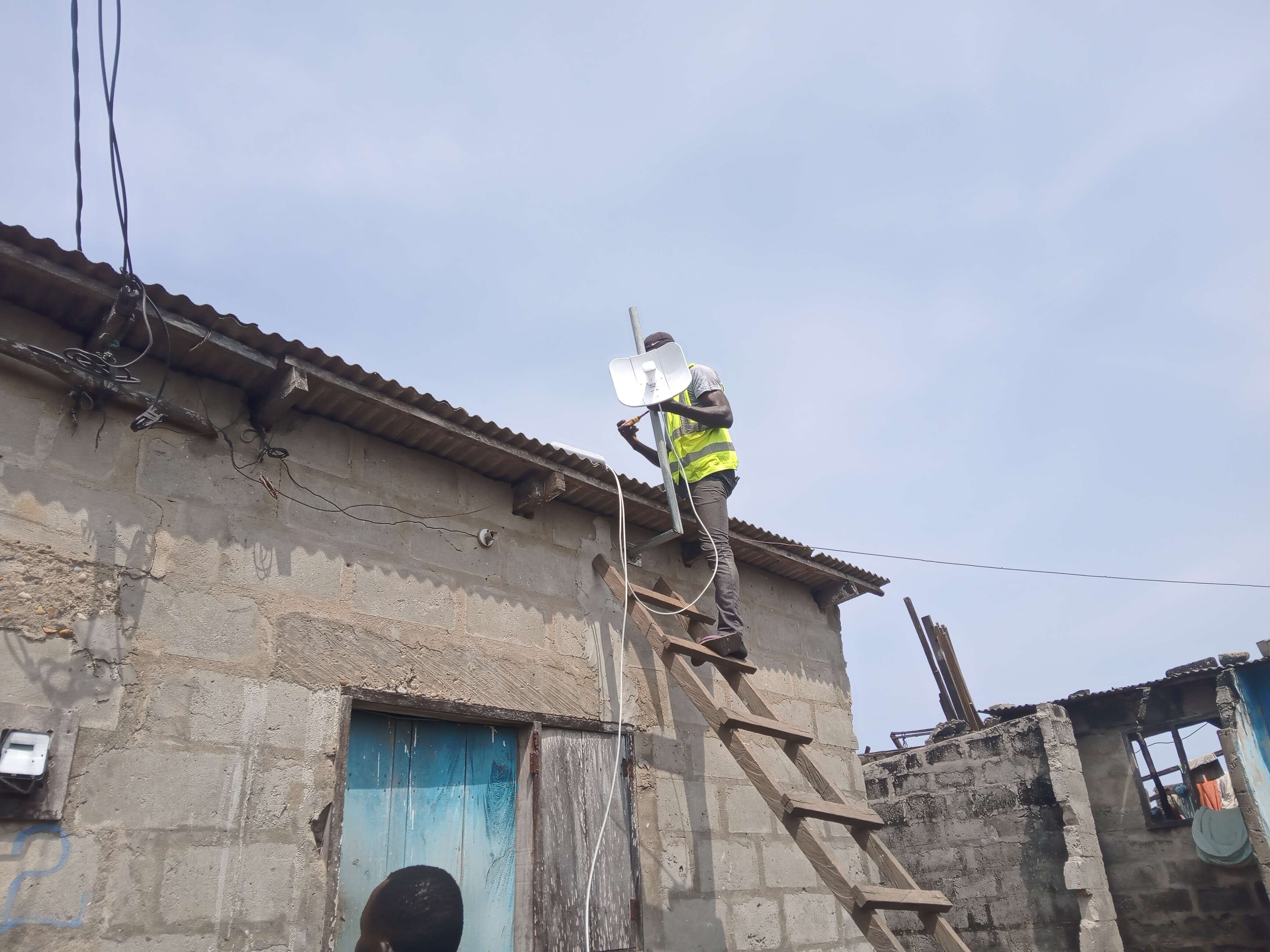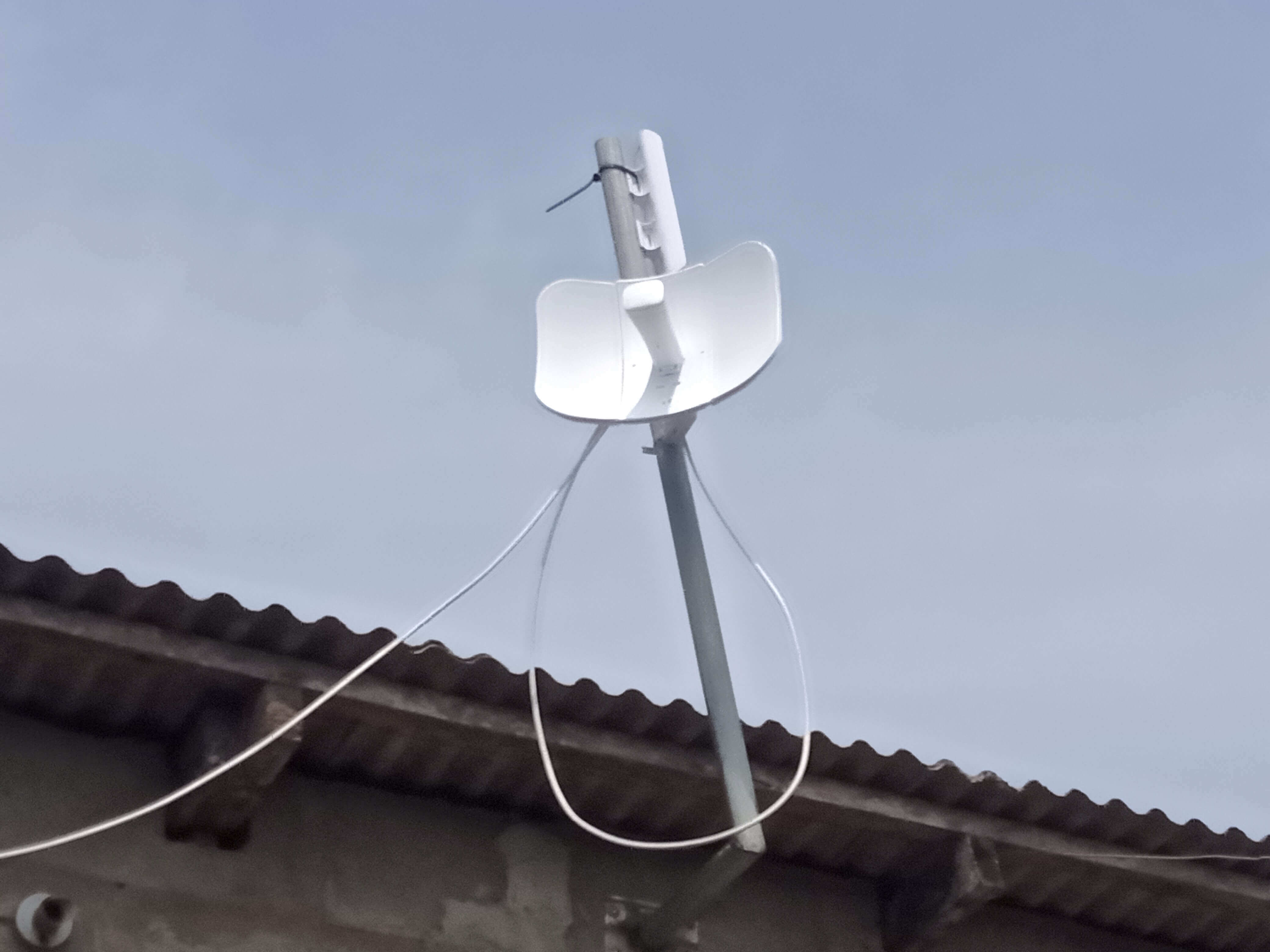 At the top of the mast are three (3) radio antennas. Two (2) Ubiquiti Rocket Prism 5AC-Gen2 5GHz fixed together with Ubiquiti airMAX (AM-5G19-120) a 120-degree sector antenna and one LiteAP AC 5GHz, 16dBi 120. The two (2) Ubiquiti Rocket Prism 5AC-Gen2 5GHz fixed together with Ubiquiti airMAX (AM-5G19-120) a 120-degree sector antenna enabled propagate the 240-degree wireless signal to both Saltpond and Mankessim communities. The two (2) Ubiquiti Rocket Prism 5AC-Gen2 5GHz fixed together with Ubiquiti airMAX (AM-5G19-120) a 120-degree sector antenna are configured as an Access Point (AP) for Point-To-Multipoint (PTMP) to organizations, schools, and households and nearby communities. The LiteAP AC 5GHz, 16dBi 120 was configured as an Access Point (AP) for Point-To-Multipoint (PTMP) to Kuntu and Hinii Township. This entire network equipment is powered by LightWave 3000 VA UPS.